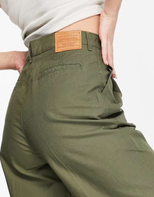 Levi s pleated high rise wide leg jeans in crisp twill olive night Very well made.