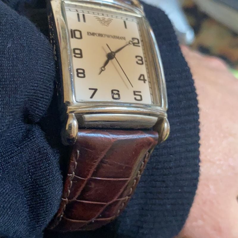 EMPORIO ARMANI WATCH mens tank style leather strap 79.99 Very well made.