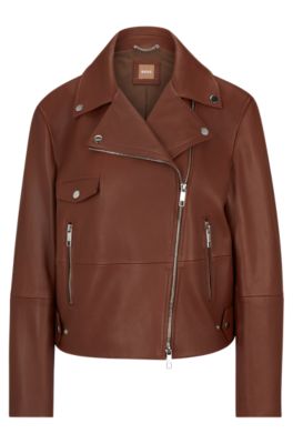 BOSS Leather jacket with signature lining and asymmetric zip Very well made.